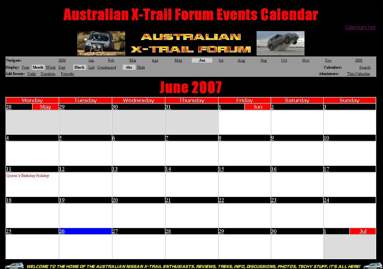 the Australian X-Trail Forum interactive events calendar.
